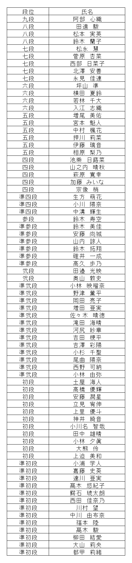 段位、1級、2級、3級のみの速報です。 10段は本部審査のため遅れることがあります。