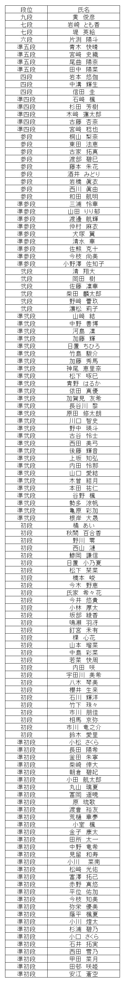 段位、1級、2級、3級のみの速報です。 10段は本部審査のため遅れることがあります。