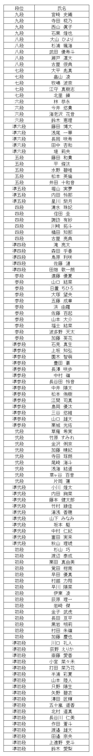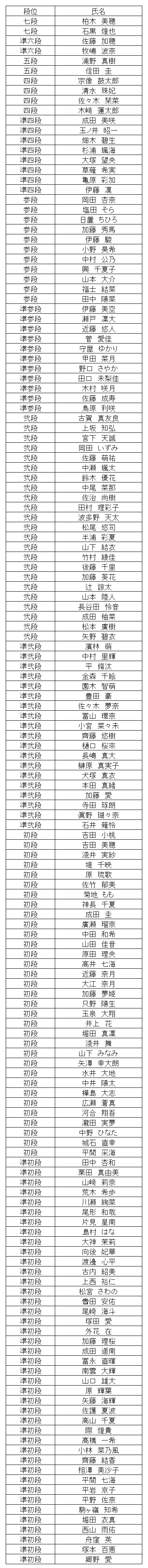 段位、1級、2級、3級のみの速報です。 10段は本部審査のため遅れることがあります。