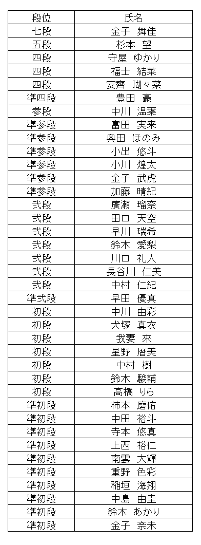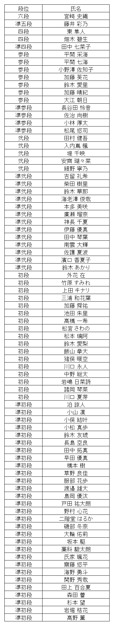 段位、1級、2級、3級のみの速報です。 10段は本部審査のため遅れることがあります。