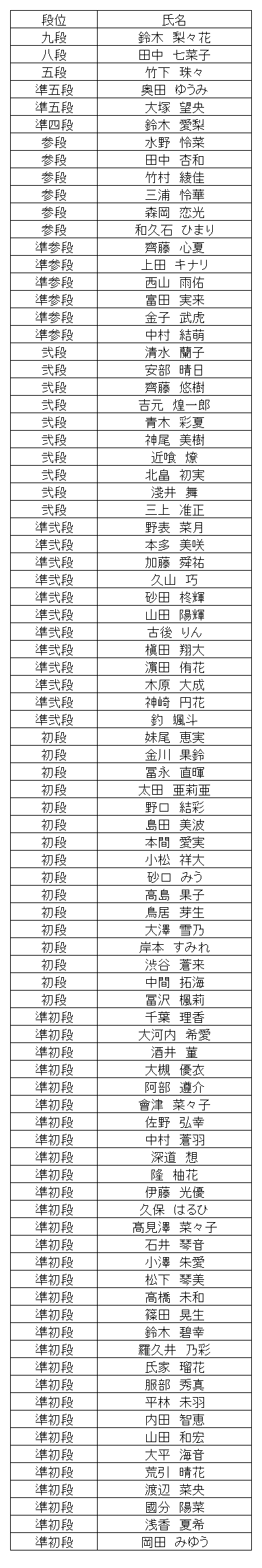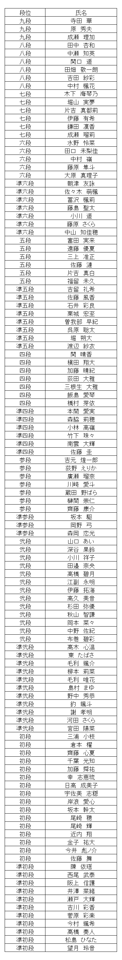 段位、1級、2級、3級のみの速報です。 10段は本部審査のため遅れることがあります。